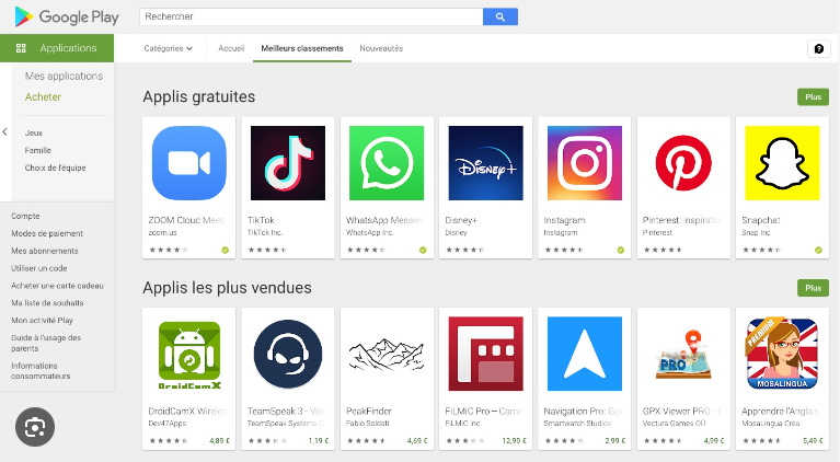 • Dans la section “Applications”, vous trouverez d’abord les recommandations et coups de cœur des internautes. Ensuite, diverses catégories d’applications vous seront proposées, telles que la photographie, les applications de voyage ou tout ce qui concerne le sport, par exemple.